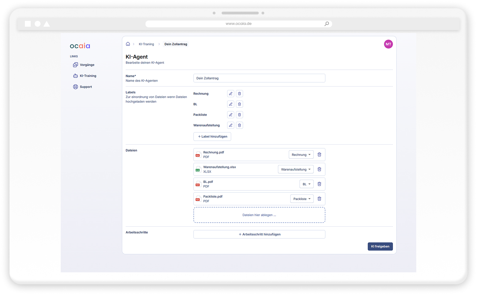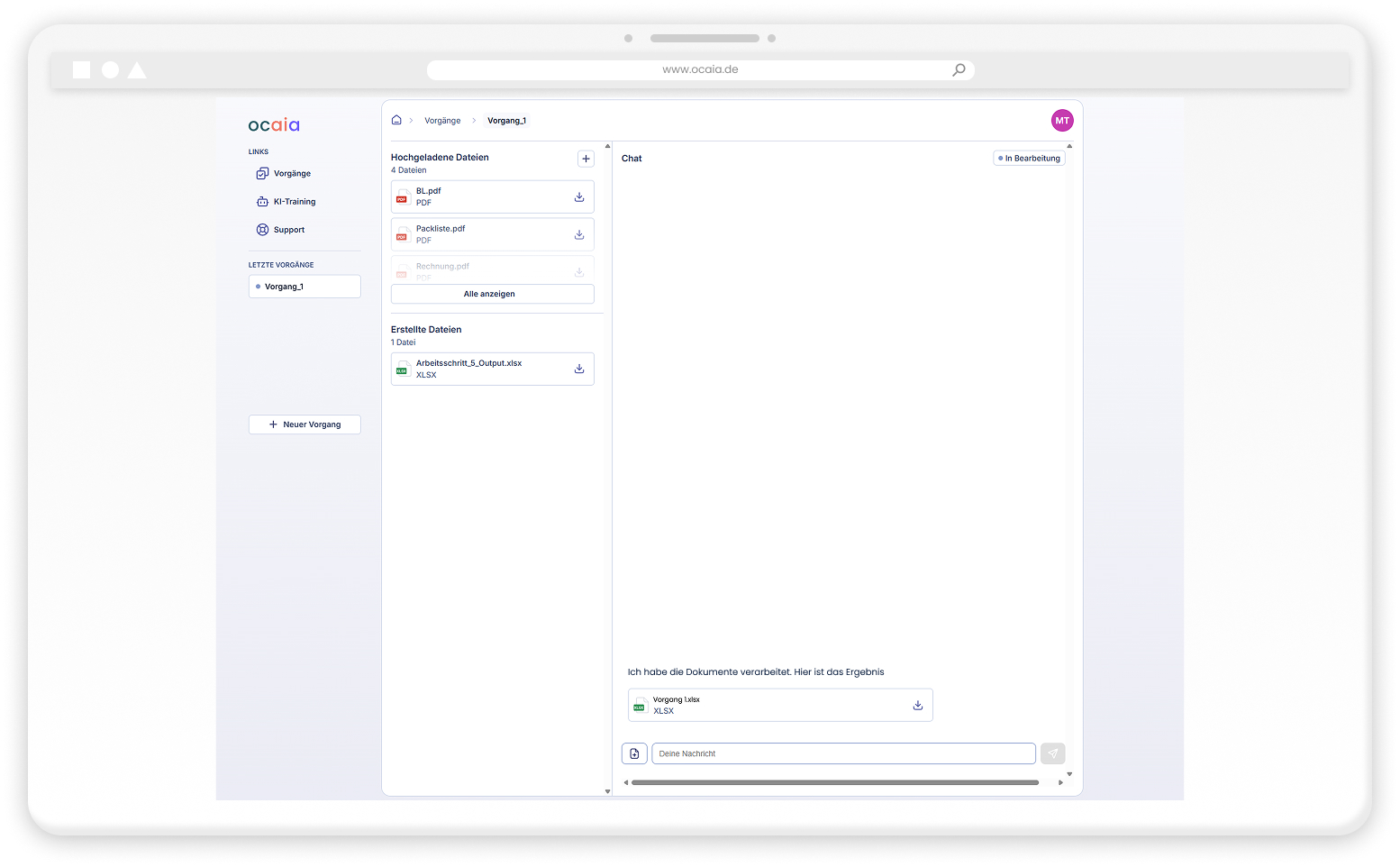 Nach der Freigabe kann jedes Teammitglied nun einfach alle Handelsdokumente in eine Excel-Datei umwandeln. Lege einen neuen Vorgang an und lass ocaia für dich arbeiten. Dokumente werden nachgeliefert?